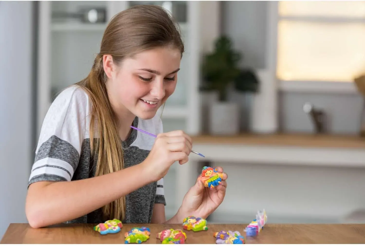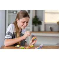 Create your own glitter fairy magnets or pins by using mould, plaster, paints and brush included in the kit.