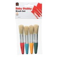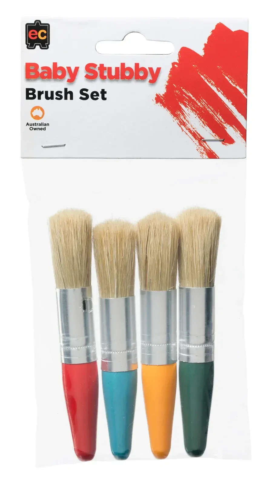 This is really the first brush any child should have! The size and weight is ideal for those little creative hands. Comes in assorted colours. 100mm overall length. Pack of 4