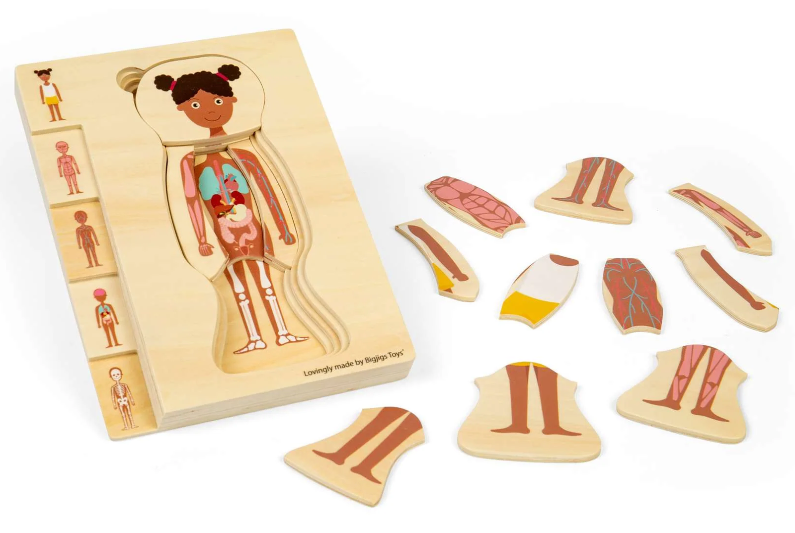 Learn about the human body with our Female Anatomy Puzzle. Each layer teaches kids about the body's intricate makeup, from the skeletal structure to the muscular and organ systems. The puzzle comes with 26 play pieces designed to simplify the complex concepts of the human body and make the study of anatomy accessible and interactive for kids.