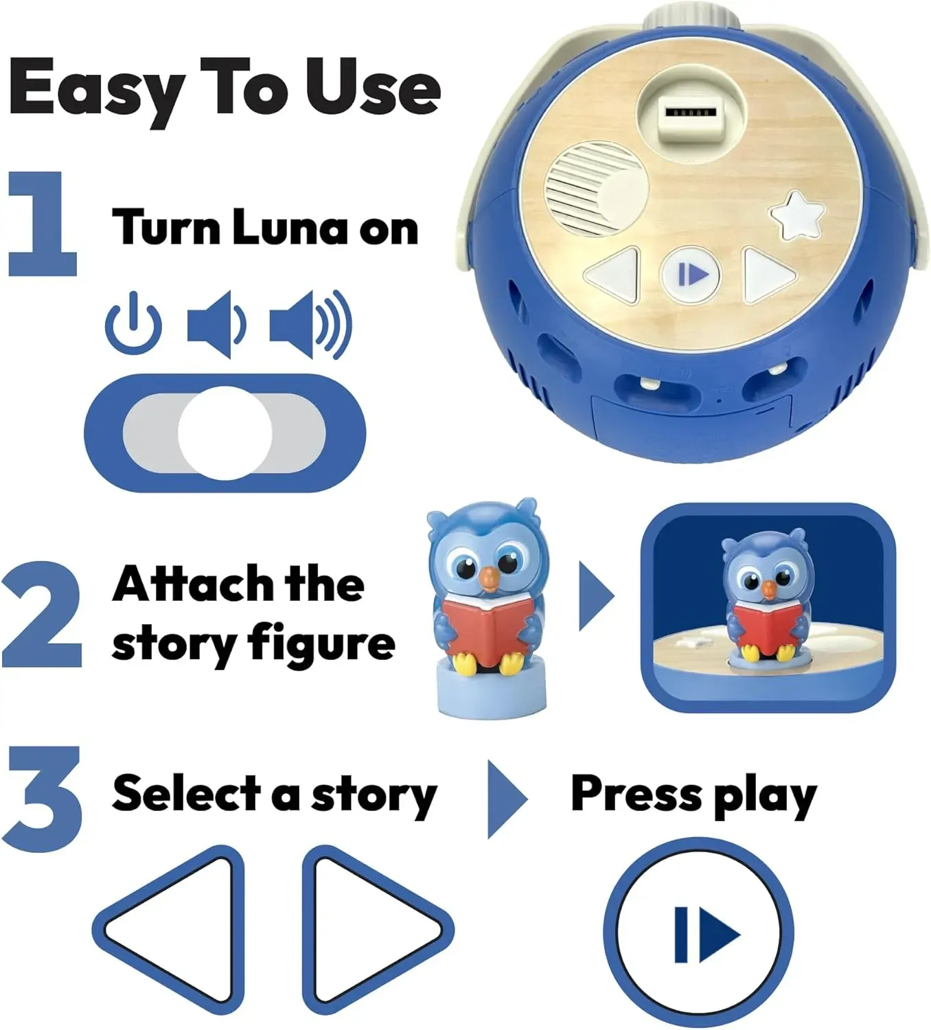 - Easy for Kids to Use : Thoughtfully designed for with little hands in mind, Luna has simple light-up controls and an easy-to-navigate menu with carry handle