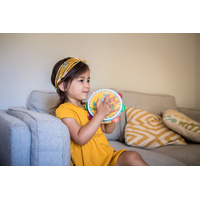 Make music with this multi-coloured Animambo tambourine. Featuring a wooden base with a beautifully detailed bird design, this tambourine makes a great first time instrument.