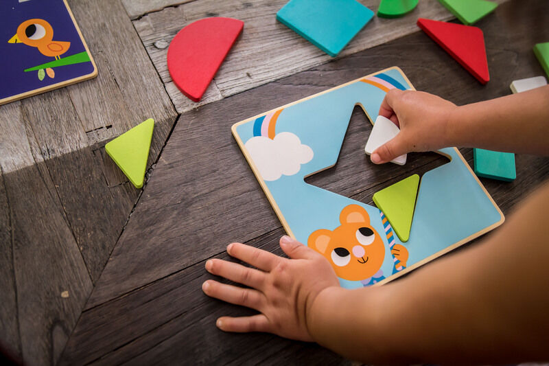 Recreate the picture scenes with the different coloured wooden shapes. The set comes with 6 different illustrations to finish and 12 wooden pieces. Great for building fine motor skills, shape recognition and colour recognition.
