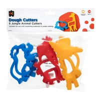 Colourful cookie style cutters that are great for dough, plasticine and clay. Make wonderful cut outs with these varieties. Set of 6 jungle animals including a elephant, crocodile, giraffe, lion, hippo and parrot.