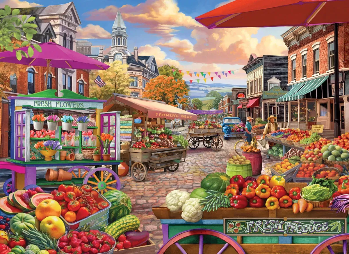 This vibrant puzzle depicts a lively market scene, with vendors selling fresh produce, flowers, and other goods. The air is filled with the aromas of delicious food and the sounds of people chatting and laughing. As you assemble the puzzle, you'll feel like you're right there in the market, soaking up the atmosphere and enjoying the sights and smells.