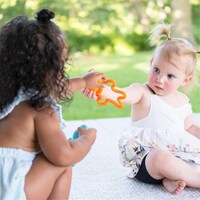 Baby's new best buddy! Made entirely of soft, safe silicone, this squishy little sidekick is soothing for sore gums and fascinating for little fingers to grab, hold, and feel. Meanwhile, built into the big noggin is a delightful dimpl bubble they'll love to poke and pop again and again! With plenty of space for clipping to strollers, car seats, or anywhere, lil' dimpl is the perfect pal for early play.