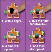 This children's puzzle is a great gift for all dinosaur aficionados. With cute prehistoric characters and colourful illustrations, it will keep little ones entertained for hours! With 15 magical patches, simply rub the heat sentitive ink with your finger and watch before your eyes as delightlful dinosaur characters magically appear and then disappear!