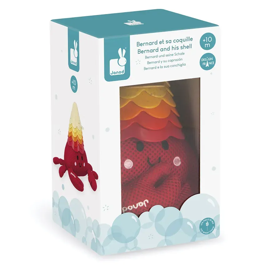 The bottom cup features a handy grip, perfect for helping Bernard get squeaky clean while making bath time extra exciting. As the cups are made with eco-friendly wheat straw, this toy is gentle on the planet and perfect for curious little hands. Ideal for children aged 10 months and up, Bernard and his shell bring splashes, giggles, and endless bath-time adventures.