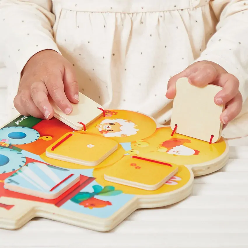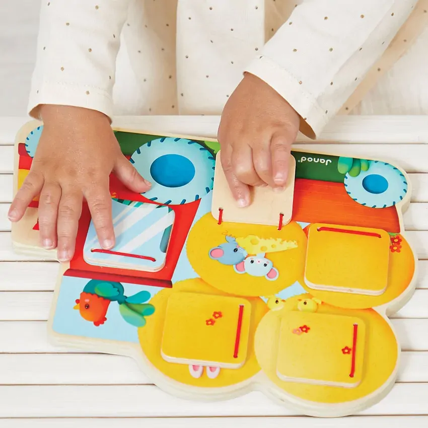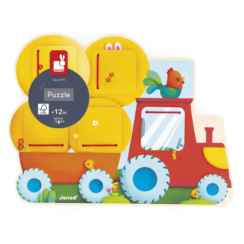 Discover the animals of the farm and introduce your child to a delightful game of hide-and-seek! This colourful wooden hide-and-seek game in the shape of a tractor is made from FSC wood and invites little ones to uncover hidden surprises while engaging in playful discovery.