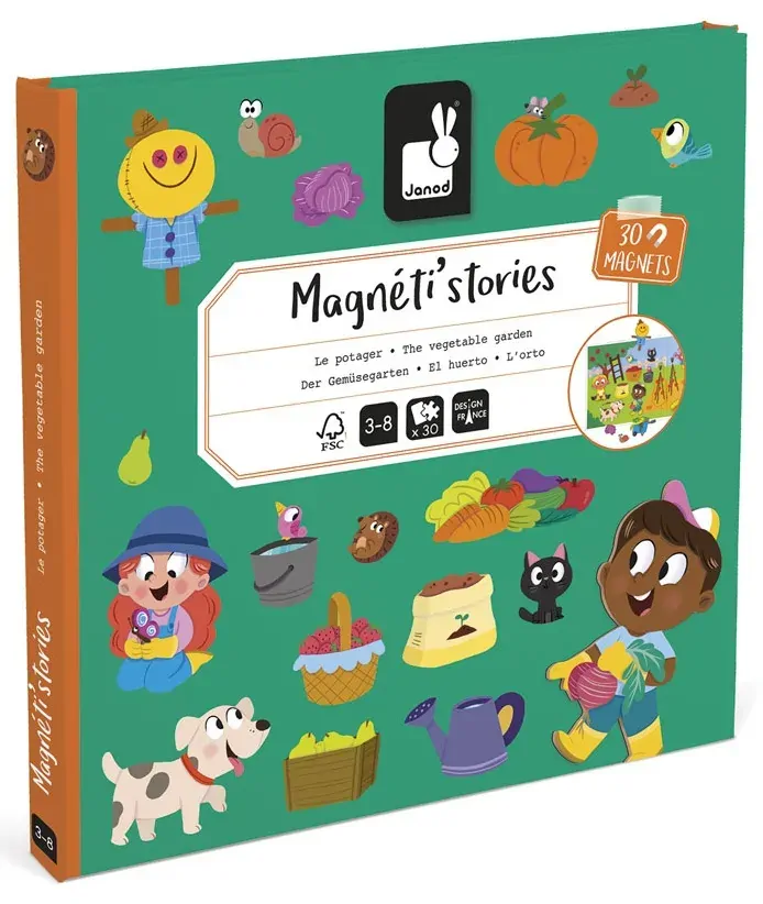 With 30 beautifully illustrated magnets featuring fruits, veggies, animals, and garden tools, this magnetic toy invites endless storytelling fun. Compact and travel-friendly, it folds neatly to 18cm x 18cm, making it perfect for imaginative play anywhere.