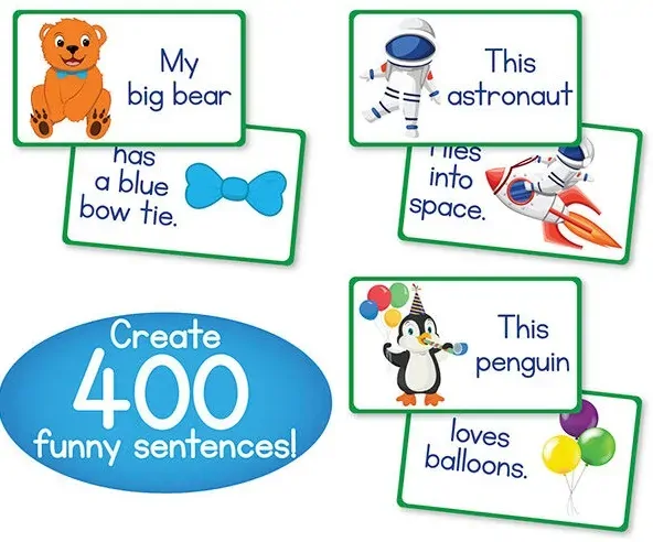 The colourful illustrations provide valuable picture clues as children build hilarious stories by mixing and matching dominoes. With 20 characters to begin and 20 scenarios to complete each sentence, children can create up to 400 imaginative stories!