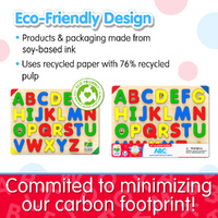KEY FEATURES The Lift & Learn ABC Puzzle teaches children how to recognise different letter shapes as well as how they are used in some simple words. Underneath each of the puzzle pieces are words and illustrations to show the letter being used, helping children understand word formation and spelling.