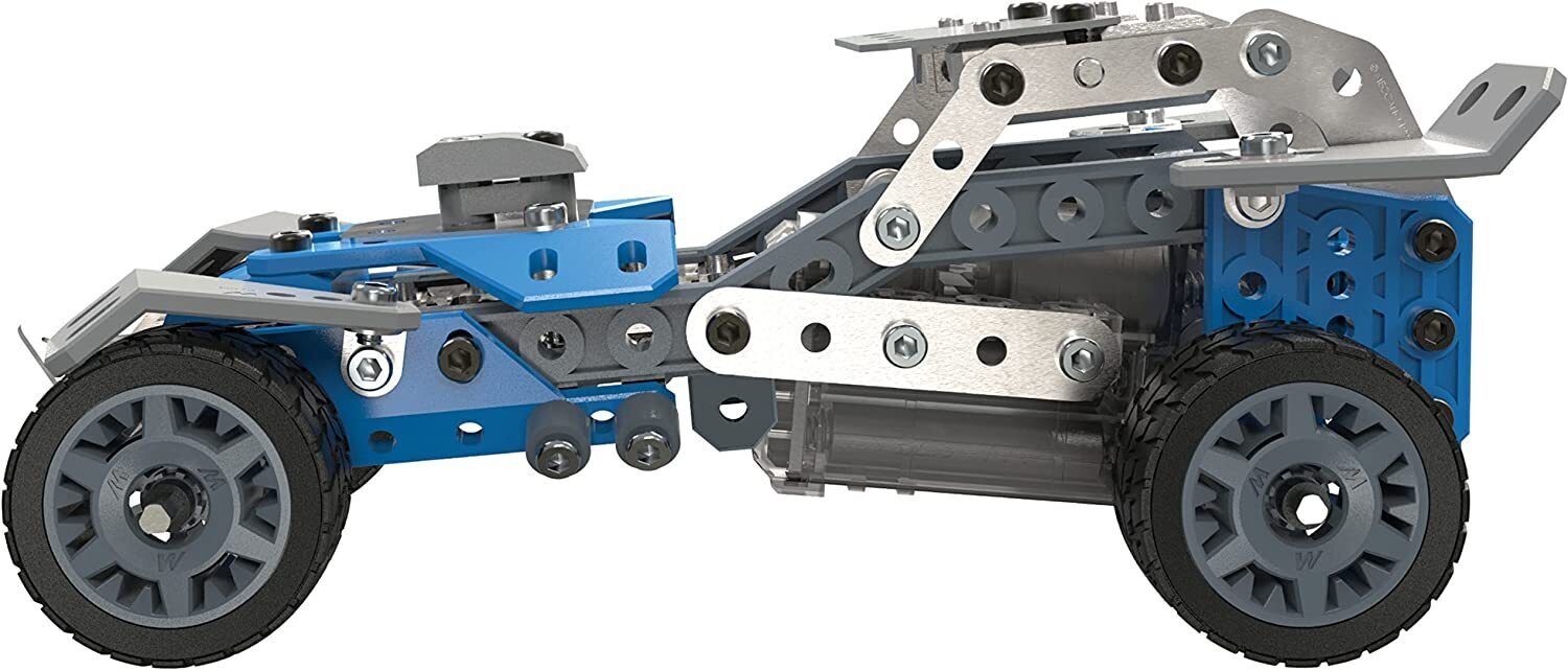 Real tools. Real metal parts. Real Racers! Gear up for a whole new build with Meccanos 10-in-1 model Rally Racer! Young minds tap into their knowledge of science, technology, engineering and math as they piece together this S.T.E.M.-stamped building kit. With 10 different builds packed into one set, budding engineers can construct again and again! Tackle this project solo, or team up with a buddy to build together! Set at a novice difficulty level, with a construction time of 1-3 hours, this is an ideal starter-kit for new builders. Once complete, the Rally Racer comes alive with the Meccablock Motor! Young builders can feel pride and satisfaction as they watch their creation take off! Build your own Rally Racer with Meccano!