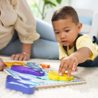 Let imaginations dive in to an underwater oasis filled with adorable sea creatures with this extra-thick wooden puzzle. The chunky puzzle features seven easy-to-grasp chunky sea creature pieces that can stand upright for pretend play. Pictures under pieces on the sturdy wooden puzzle board help with matching. Puzzle play encourages hand-eye, fine motor, and problem-solving skills.