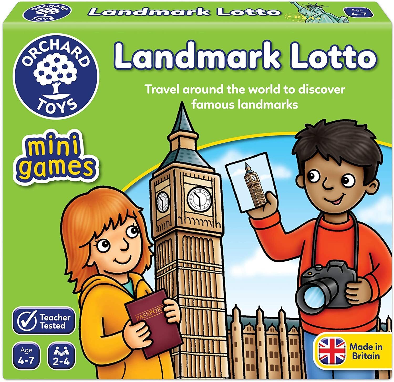 Explore the famous landmarks of the world in this fun travel size game! With 24 landmark cards to choose from there's lots to see, from big Ben to the Great Wall of China!