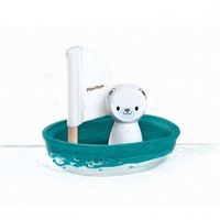 The boat floats in water and the polar bear can be removed, ideal for use as a bath toy.