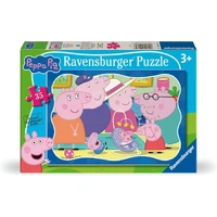 A bright and vibrant 35 piece puzzle featuring Peppa Pig with her family and beloved new sibling.