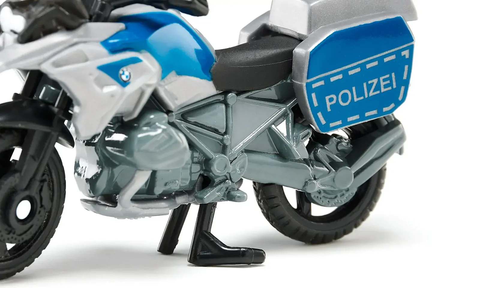 Watch out, here comes the police! There are calls that the police will only entrust to their motorcycle squad. These include emergencies on crowded roads or the congested Autobahn - because the agile two-wheelers will zip along, even on narrow and hard-to-access roads. Their hearts will beat faster whenever motorcycle enthusiasts, and police officers, lay their eyes on this machine: No wonder, seeing as the BMW R1250 GS LCI has been Germanys best-selling motorbike for years, holding the status of a true icon for decades now! As an emergency vehicle, the powerful machine is clad in the characteristic blue-silver of the police paired with neon yellow stripes. Naturally, it also comes standard with: A flashing blue light to ensure other motorists and passers-by are warned in time during the pursuit chase in the children's room. The frame and tank are made of metal, handlebar and stand are movable, and the wheels are equipped with real rubber tyres. These attributes let this classic motorbike offer realistic playing fun for horsepower lovers young and old!