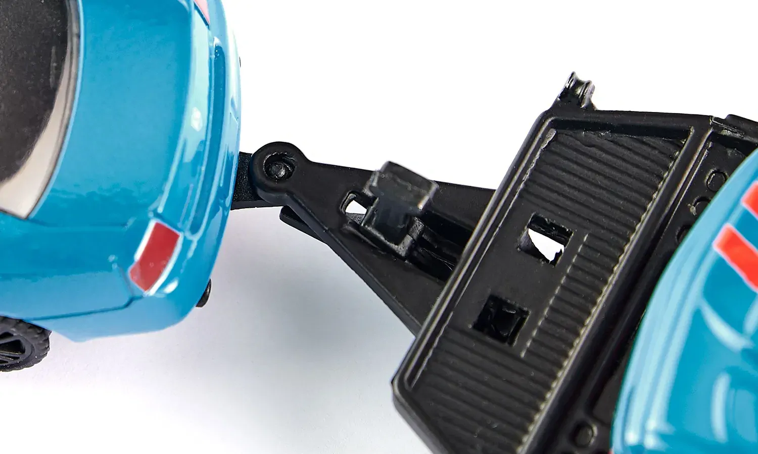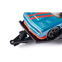 Racing set with 8-cylinder powerWhat a combination! What paintwork! On the car trailer, the Dodge Charger pulls the Dodge Challenger SRT Racing to the next track test. The trailer is slowly tilted backwards, and the sky-blue V8 monster rolls backwards. Door open, final instructions to the driver. Starting number 42 is cleared to start the warm-up. The car roars out of the pit lane onto the course. The rubberised wheels on the sporting rims are warmed to running temperature, and then: Foot to the floor and release 700 HP. Vroom!