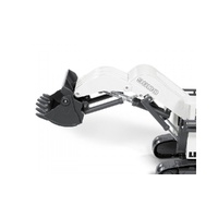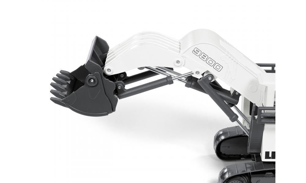 The giant amongst the caterpillar excavators on construction sites and for surface mining is a true colossus. Even in HO scale. The brand new R9800 series from Liebherr incorporates the largest and strongest excavators in the world. The model, which virtually only consists of metal, is transported safely to its next place of use between two crawler chains. The huge face shovel excavator arm is fully functional and loads the mining dumper in a jiffy. The drivers cabin and access ladders are precise in detail and complete this exceptional model.