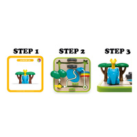 3, 2, 1 and pose! These safari animals love to model for your camera! Can you get the animals in the picture-perfect position for the snapshot? Dont forget the lion doesnt like water, the elephant cant climb over the rocks and the giraffes are too tall to fit underneath the trees. A 2-in-1 learning game for toddlers: puzzle or play and let your imagination go wild! Learn about shapes and concepts as left, right, on top, in front, and behind. Sort shapes and follow the path. Ready to have a wild time?