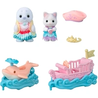 The set includes Seal Baby, Latte Cat Cradled Baby, boat, dolphin, hat, and tiara.