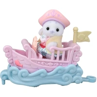 Experience dynamic play with the Sylvanian Families Amusement Park Ride Set Ride the Waves. This set features two mechanical floats: a boat that rocks back and forth and a dolphin that moves up and down as it advances. Complete with a seal and a baby cat figure, these floats offer interactive motion for engaging storytelling. Compatible with other float series from Forest Park, this set allows you to create an exciting parade, enhancing your collection with fluid, coordinated movement.