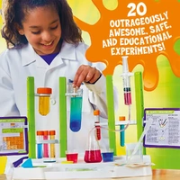 Grab your beakers and test tubes and step up to your special laboratory station for some exciting chemistry experiments. See how much fun chemistry can be as you do slimy, fizzy, colourful, and bubbly experiments. This cool laboratory setup has lots of different vessels and pieces of lab equipment so kids can play the role of chemist while doing real, safe experiments. All of the experiments use non-hazardous chemicals.