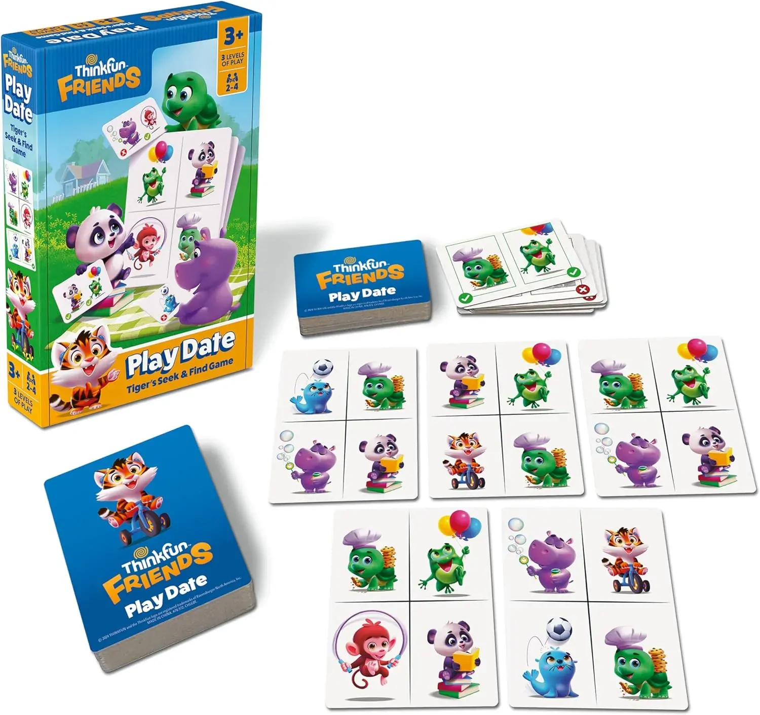 ThinkFun Friends: Play Date is an exciting multiplayer preschool game packed with fun and learning! Featuring three levels of play, its the perfect way for kids to build skills while enjoying playtime with friends.