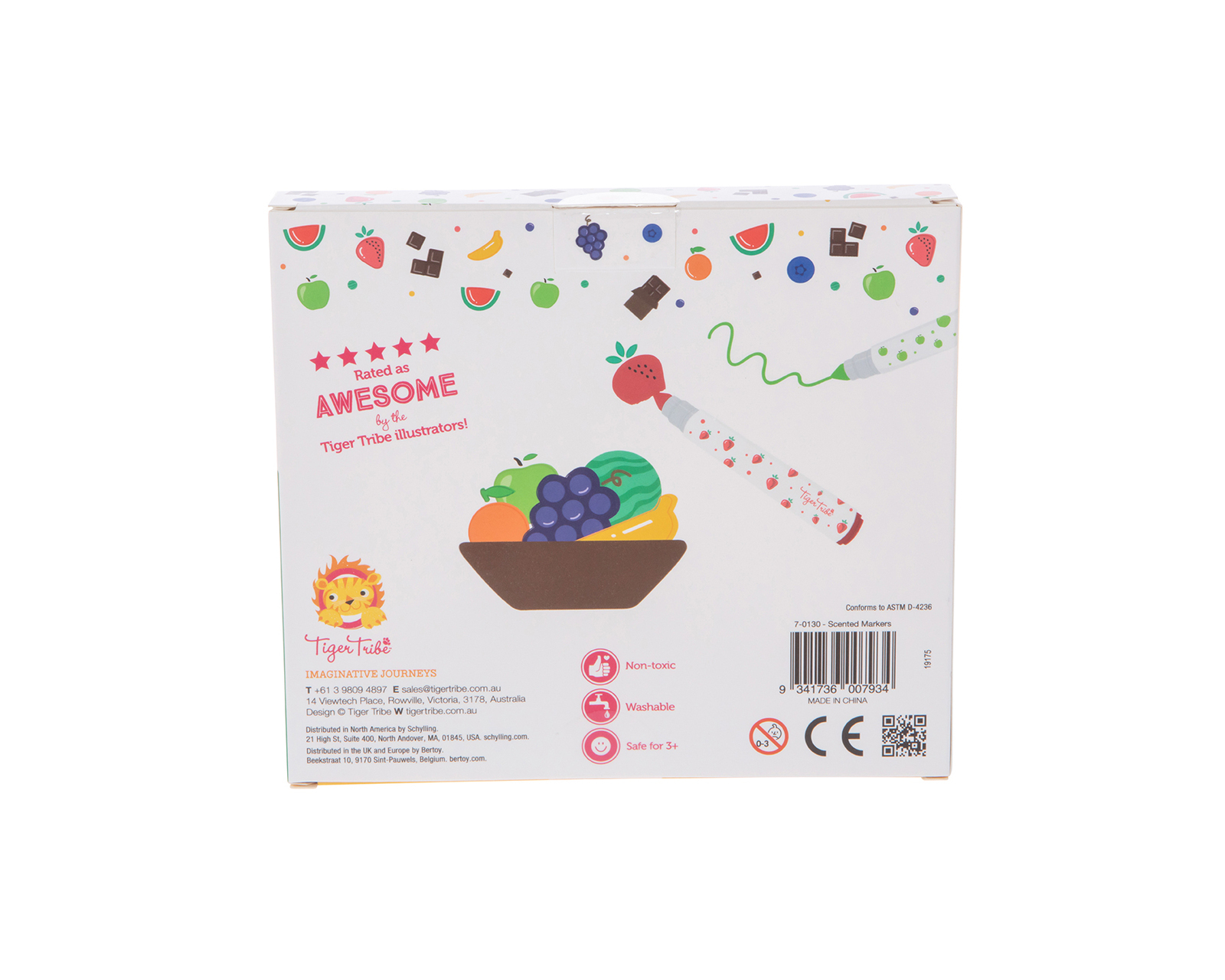 Perfect for kids who want to make something super sweet and bright, each marker barrel is decorated with charming little food icons that match the scent.