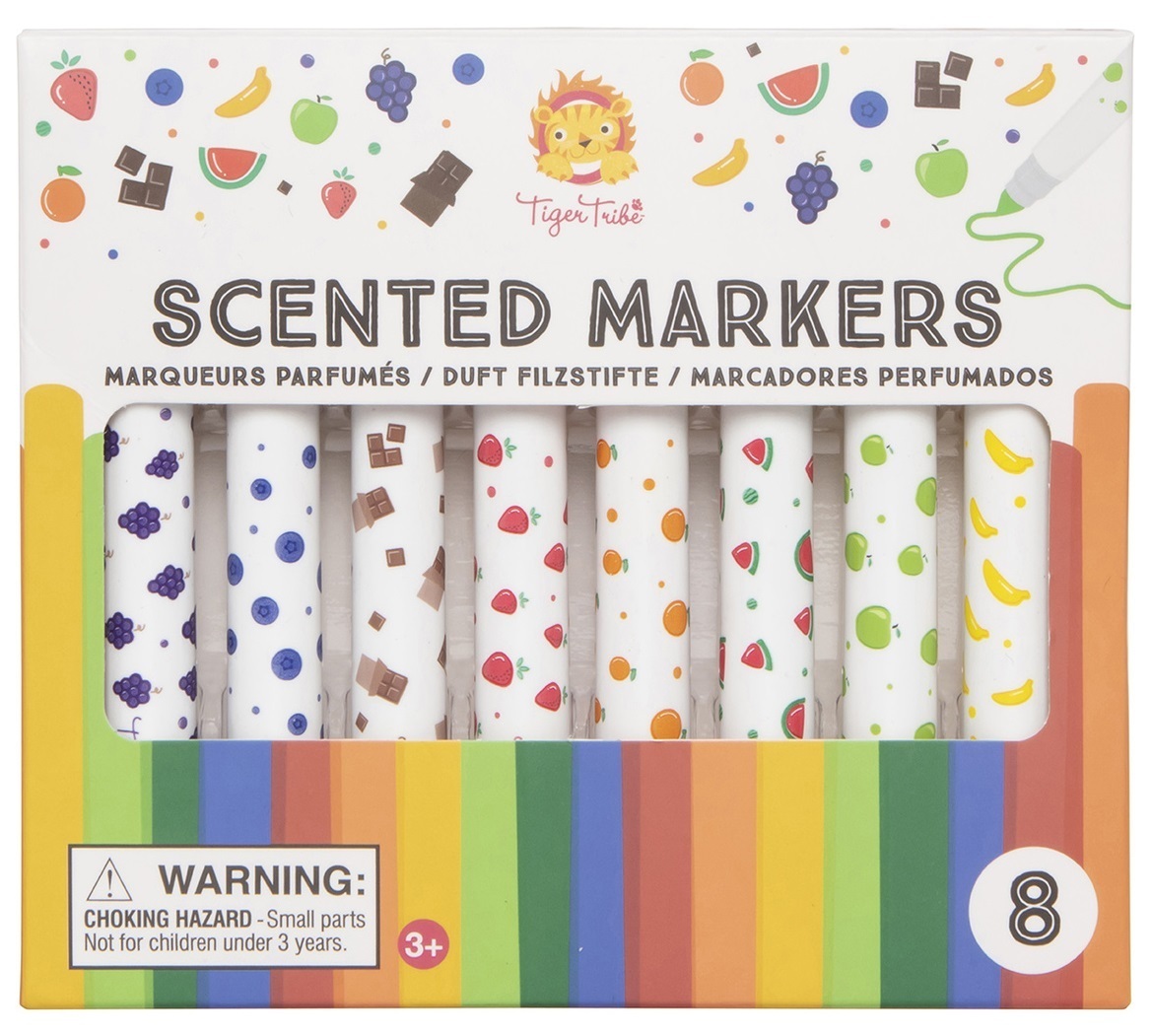 Introducing Tiger Tribes super cute Scented Markers a fun set of 8 delicious smelling, colouring-in tools for kids.
